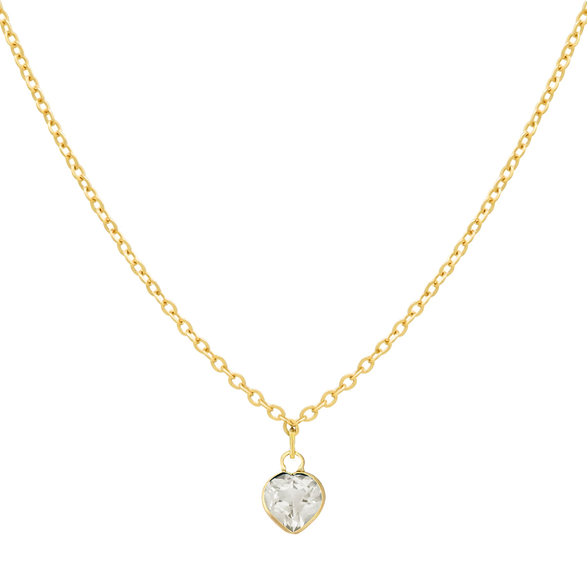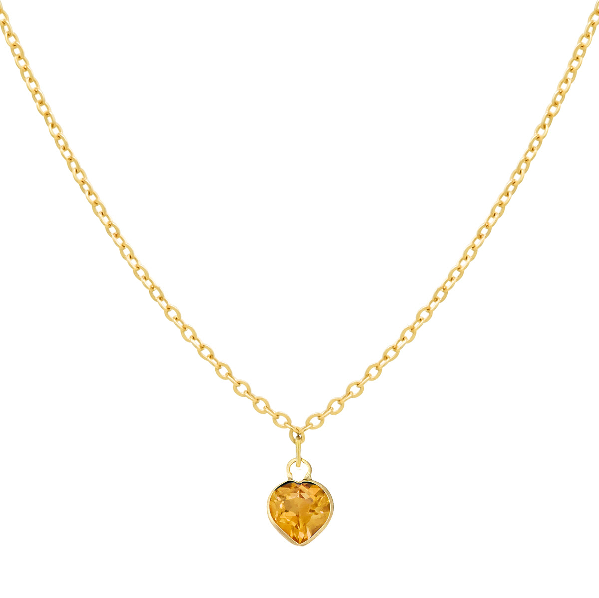 Solid Gold Tiny CZ Heart Birthstone Necklace - Necklaces - November - Topaz - November - Topaz - Azil Boutique