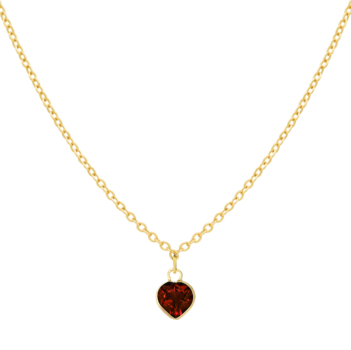 Solid Gold Tiny CZ Heart Birthstone Necklace - Necklaces - January - Garnet - January - Garnet - Azil Boutique