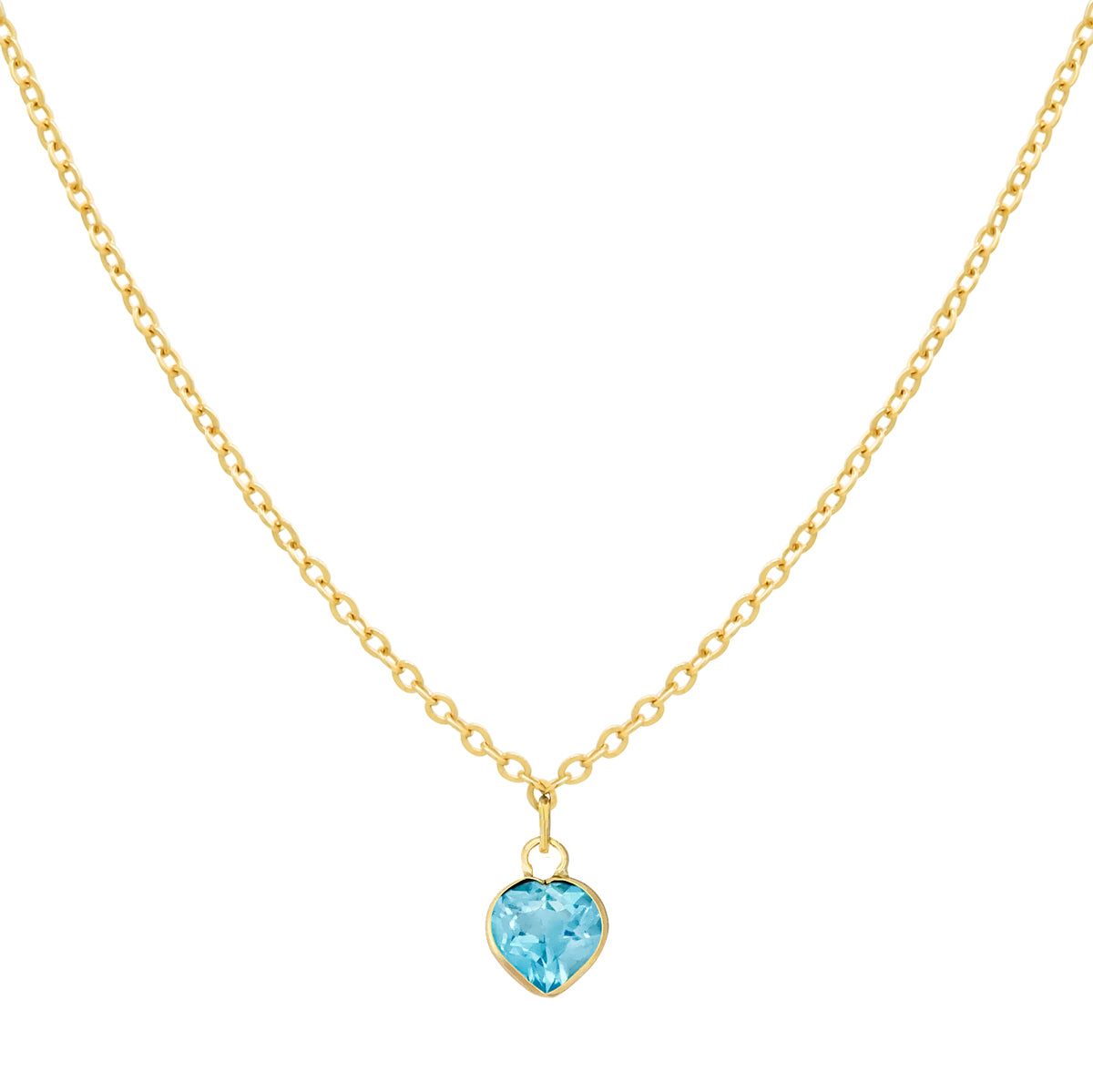 Solid Gold Tiny CZ Heart Birthstone Necklace - Necklaces - March - Aquamarine - March - Aquamarine - Azil Boutique