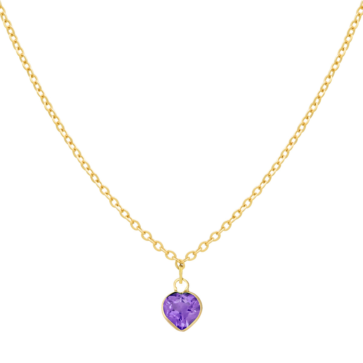 Solid Gold Tiny CZ Heart Birthstone Necklace - Necklaces - February - Amethyst - February - Amethyst - Azil Boutique
